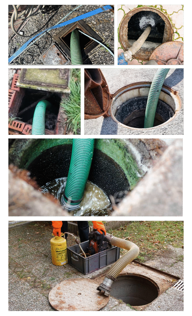 Nettoyage avec de l’eau à haute pression pour désincruster les parois de la fosse, des canalisations ou des citernes, afin d’éliminer les dépôts tenaces.
